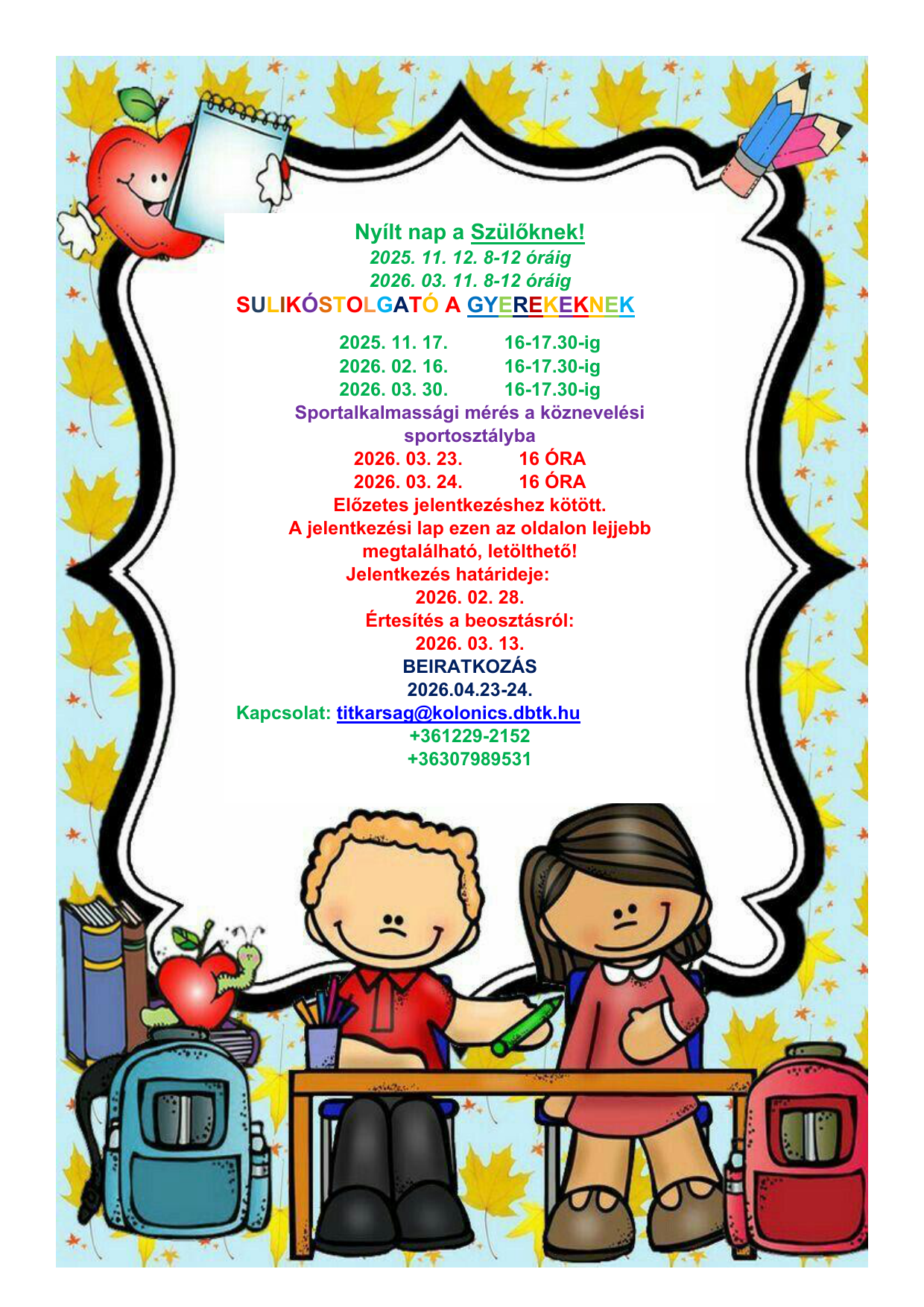 2-4. osztályok: 2025. szeptember 8. hétfő 17:00 óra