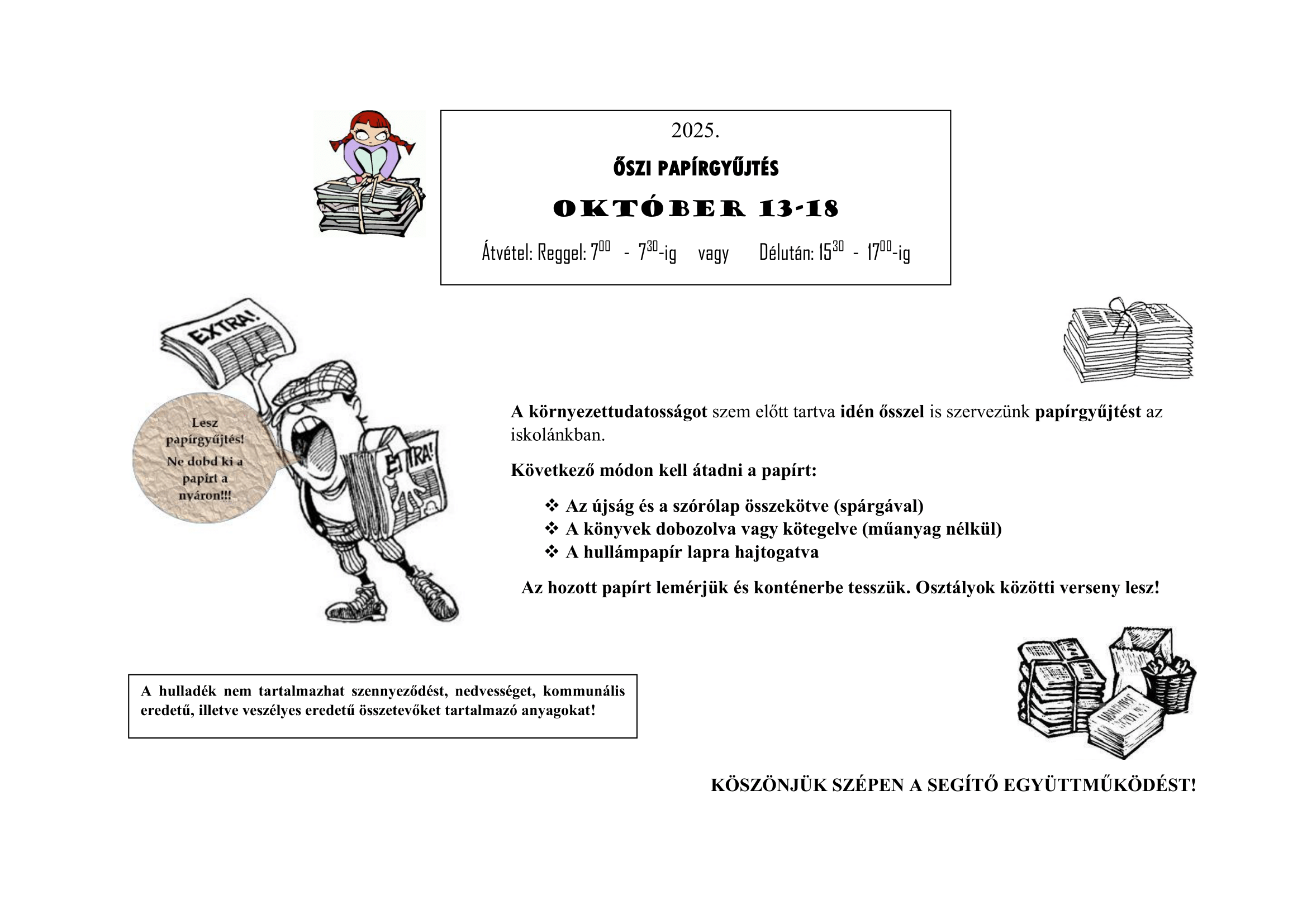 5-8. osztályok: 2025. szeptember 9. kedd 17:00 óra